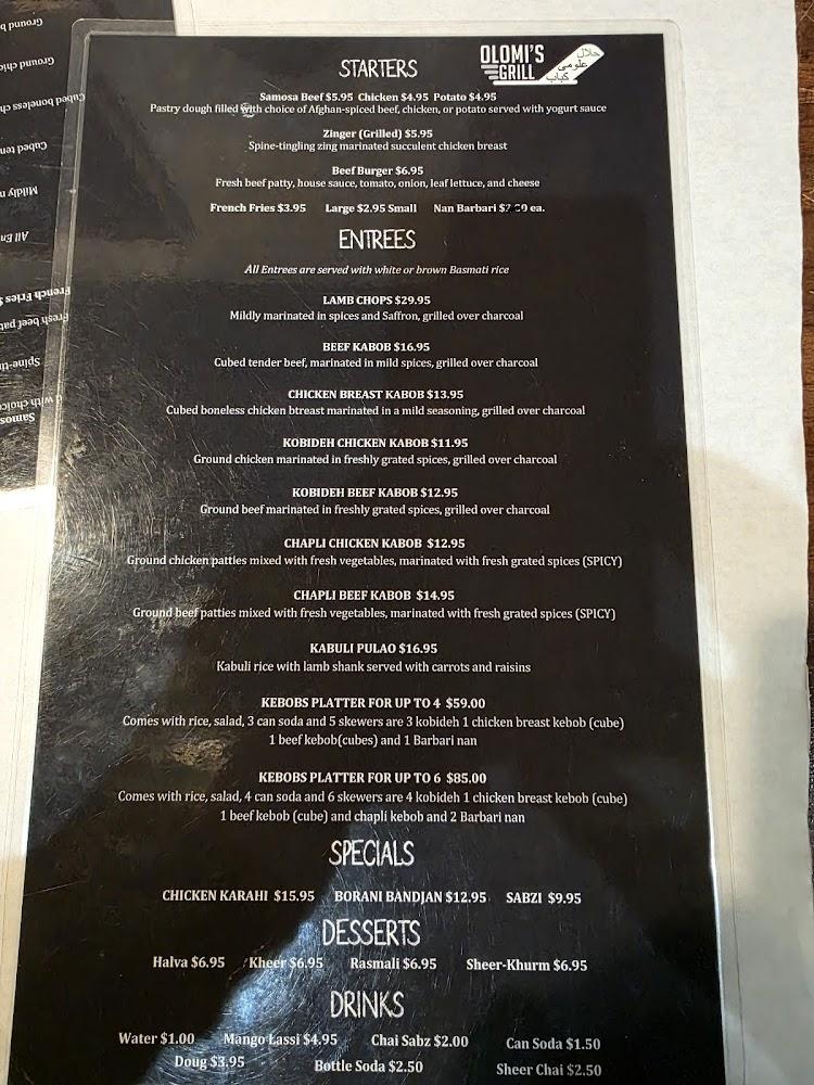 The menu at Olomi's Grill showcases a well-thought-out selection of dishes that represent Afghan cuisine. Each plate highlights aromatic spices, fresh ingredients, and notable traditional recipes that resonate well with diners from all backgrounds.